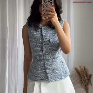 Женский жилет с пайетками, с поясом, О-образным вырезом, без рукавов, однотонное, стильное пальто – летний женский жилет на пуговицах, огненный уличный стильМатериал : Полиэстер
