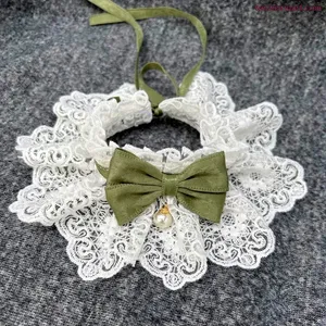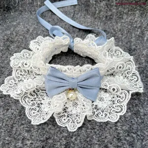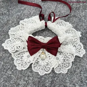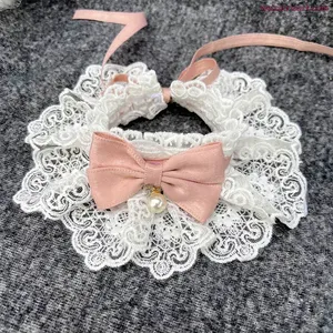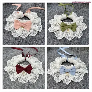 Ошейник для домашних животных с атласным галстуком, жемчугом и стразами
