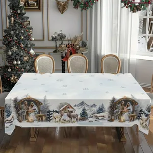 Зимний снеговик, олень, рождественская елка, обеденный стол, праздничный декор, скатерть