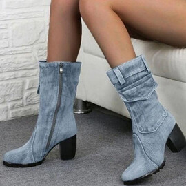 Женские ковбойские сапоги на молнии с массивным каблуком. Осенне-зимние сапоги.