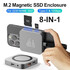 Характеристики: 1. Магнитное надежное крепление: Благодаря встроенной магнитной структуре этот концентратор USB C обеспечивает надежное крепление корпуса жесткого диска к телефону, предотвращая случайное отсоединение.. Совместимо с чехлами Magsafe, обычными чехлами для телефонов или вообще без чехла. 2. Расширение «Восемь в одном»: Этот концентратор USB C включает в себя корпус твердотельного накопителя с семью интерфейсами.: Порт, совместимый с HDMI 4K60 Гц, порт USB-C 3.2 со скоростью передачи данных 10 Гбит/с, порт USB-A 3.2, слот SD 3.0, слот TF 3.0, 3-миллиметровый разъем AUX для наушников и порт подачи питания PD 100 Вт удовлетворят все потребности вашего офиса. 3. Совместимость с высокой емкостью: Магнитный корпус SSD поддерживает протокол NVMe (Клавиша B+M/Клавиша M) твердотельные накопители с возможностью расширения емкости до 2 ТБ. Он поддерживает диски типоразмера 2230 и обеспечивает скорость чтения/записи до 10 Гбит/с для быстрой передачи данных и резервного копирования, а также обратную совместимость с USB 3.1 Gen1 и USB 3.0. 4. Поддержка двух считывателей карт: Интерфейсы карт SD/TF этого адаптера-концентратора USB C позволяют одновременно считывать данные с двух карт, что обеспечивает быструю передачу больших медиафайлов и упрощает передачу фотографий и видео.. Наслаждайтесь видеовыходом 4K/60 Гц для детального и захватывающего просмотра в формате HD. 5. Портативный универсальный дизайн: Компактная и удобная для переноски док-станция для ноутбука идеально подходит для использования дома, в офисе, в помещении, на улице и в путешествиях.. Оснащенный портом USB3.2 Gen2 Type-C на 10 Гбит/с, он совместим с iPhone 15 и более поздними версиями, совместим с Mac OS/Windows/Linux и системами Android, что делает его идеально совместимым с ноутбуками MacBook Pro/Air/Windows и планшетами Android.. Корпус из алюминиевого сплава эффективно рассеивает тепло, защищая жесткий диск.