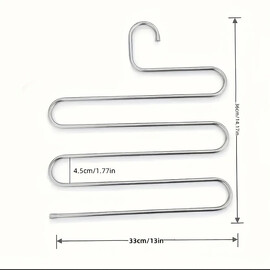 Познакомьтесь с нашей 5-ярусной вешалкой для брюк из нержавеющей стали — универсальным и экономящим место решением для вашего шкафа.. Эта S-образная нескользящая вешалка предназначена для хранения нескольких пар брюк, джинсов или штанов, что делает ее прекрасным дополнением к любому гардеробу.