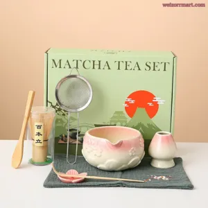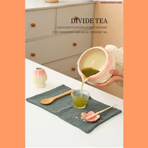 Японский чайный сервиз включает в себя чашу для матча, которую можно наливать в рот
