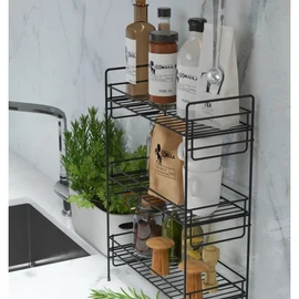 Полностью металлическая, нержавеющая 3-уровневая кухонная полка, которую можно использовать для организации беспорядка на кухонной столешнице. Полки можно снимать, поэтому при необходимости изделие можно использовать как одноярусную полку.