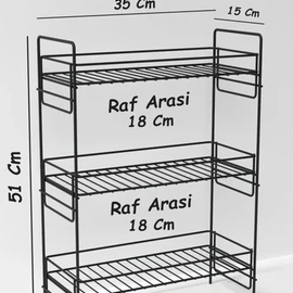 Размеры полок: 15×35 см, расстояние между полками — 18 см. Сняв среднюю полку, вы можете увеличить расстояние до 36 см, а снятую полку использовать отдельно как одноярусную подставку. Благодаря этим ölçülərə полку можно применять как под столешницей, так и на столешнице.