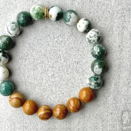Браслет из натуральных камней: можжевельник и моховый агат