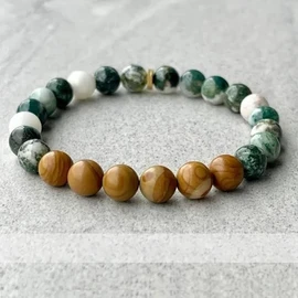 Браслет из натуральных камней отлично подходит как для повседневного использования, так и для особых случаев.Браслет из можжевельника и мохового агата, 8 мм.