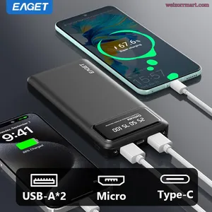 Бренд: EAGET Цвет: черный и белый Емкость аккумулятора: 10000 мАч Вход: Type-C/Micro Вход: DC 5 В - 2,1 А Выход: USB-A Выход: DC 5 В - 2,1 А Размер: 14,1 x 7 x 1,5 см / 0,41 x 0,23 x 0,04 фута / 5,55 x 2,75 x 0,59 дюйма