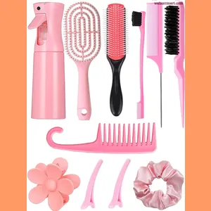 Многофункциональный набор инструментов для укладки волос из 11 предметов включает в себя всё необходимое для ухода и укладки волос. Массажные расчёски, пульверизатор высокого давления, расчёски для распутывания волос и резинки для волос облегчат выпрямление, распутывание и массаж волос. Каждый инструмент подходит для всех типов волос и поможет вам поддерживать причёску в комфортной домашней обстановке. Кроме того, этот набор станет идеальным подарком, особенно для вашей девушки или членов семьи.